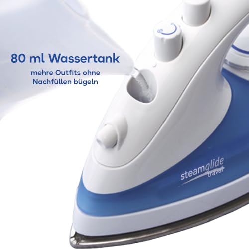 KLEIN, ABER OHO – Trotz seiner kompakten Größe liefert der 80-ml-Wassertank starken Dampf, um hartnäckige Falten mühelos zu entfernen – perfekt für Geschäftsreisen oder zum Mitnehmen in den Urlaub.