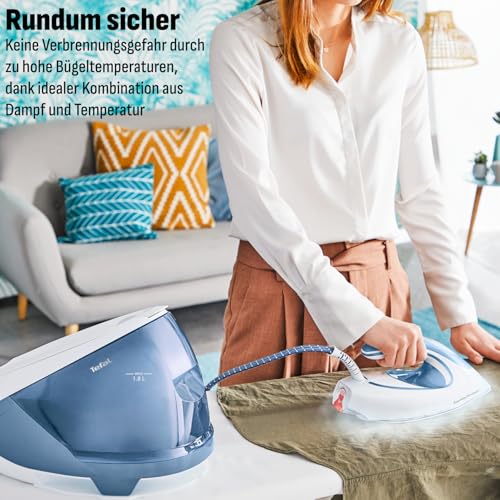 Tefal Dampfbügelstation Express Protect, leistungsstarker 7,5-Bar-Druck, Dampfstoß: 520 g/Min., 1,8 L Wassertank, Smart Temp-Technologie, Kalk-Kollektor, Bügeleisen Dampfstation, weiß/blau, SV9202
