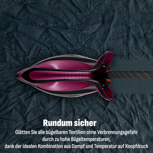 Rundum sicher: Glätten Sie alle bügelbaren Textilien ohne Verbrennungsgefahr durch zu hohe Bügeltemperaturen, dank der optimalen Kombination aus Dampf und Temperatur auf Knopfdruck