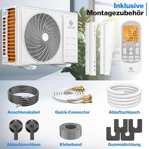 𝐄𝐈𝐍𝐅𝐀𝐂𝐇𝐄 𝐈𝐍𝐒𝐓𝐀𝐋𝐋𝐀𝐓𝐈𝐎𝐍: Dank der praktischen Quick-Connect-Technologie lässt sich die KESSER Klimaanlage schnell und problemlos installieren. Kein Entlüften oder Vakuumpumpe notwendig. Mit dem mitgelieferten Montagezubehör können Sie das Gerät sofort in Betrieb nehmen, ohne aufwendige Vorbereitungen.