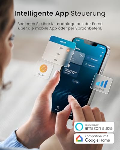 SMART HOME FUNKTIONEN: Steuere Deine Smart Home Klimaanlage bequem per App oder per Sprachbefehl über Amazon Alexa und Google Home. Lege Zeitpläne fest, aktiviere den Timer oder ändere die Temperatur direkt vom Sofa oder Bett aus – einfacher geht’s nicht.