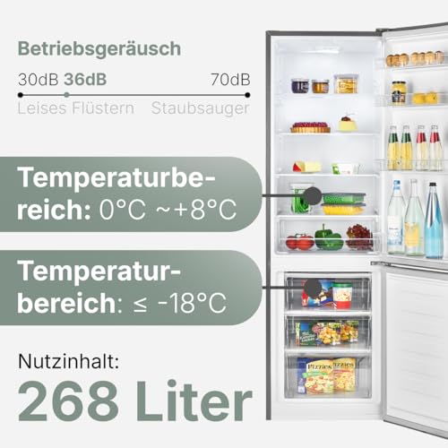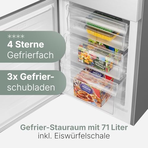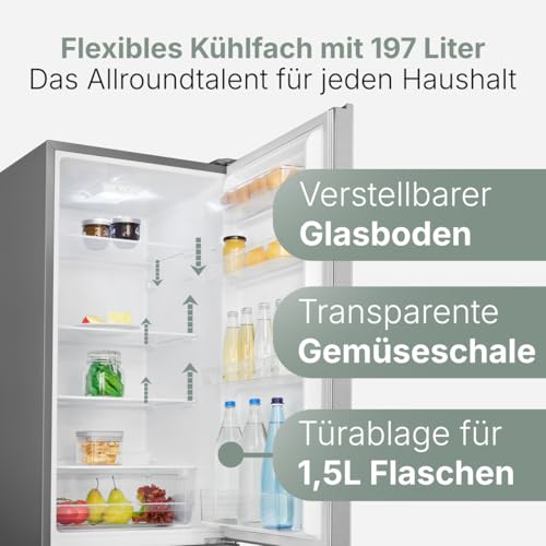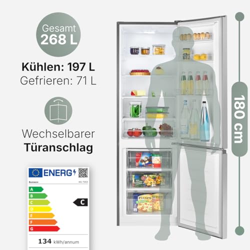 Bomann® Kühlschrank mit Gefrierfach | Energieklasse C | 180cm | Kühl Gefrierkombination leise 36 dB | 4 Ablagen & 3 Schubladen | Türanschlag wechselbar | 268L Kühlgefrierkombi | KG 7353 inox