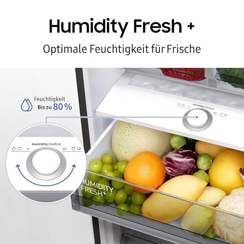 Samsung RB38C607AB1/EF Kühl-Gefrierkombination, 203 cm, 387 l, AI-Kühlschrank mit Gefrierfach, Wifi & AI Energy Mode, Humidity Fresh+, Space Max Technologie, No Frost+, Premium Black Steel