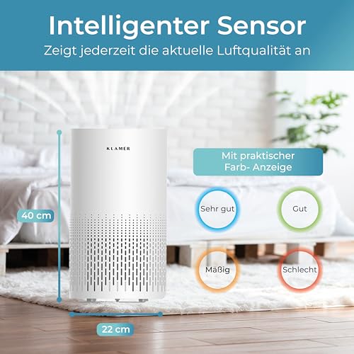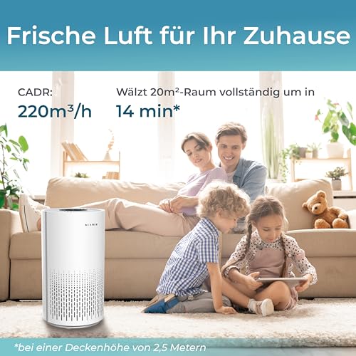 KLAMER Luftreiniger 300i mit HEPA Filter, CADR Spitzenleistung von 220 m³/h, für Räume bis 50m², entfernt bis zu 99,9% Pollen, Staub, Viren und Allergene, 3 Modi inkl. Automatikmodus