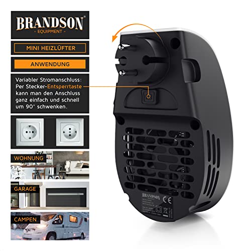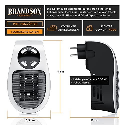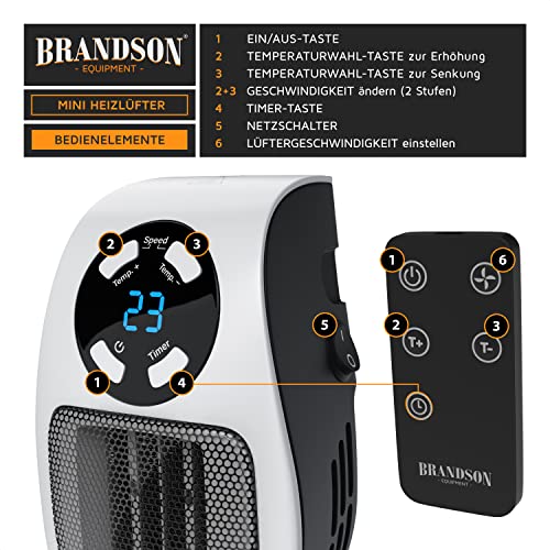 Brandson – Heizlüfter energiesparend leise – mit Fernbedienung – für die Steckdose – Keramik Heizung mit Thermostat – Überhitzungsschutz – Steckdosen Heizlüfter 500W – Badezimmer Schlafzimmer Büro