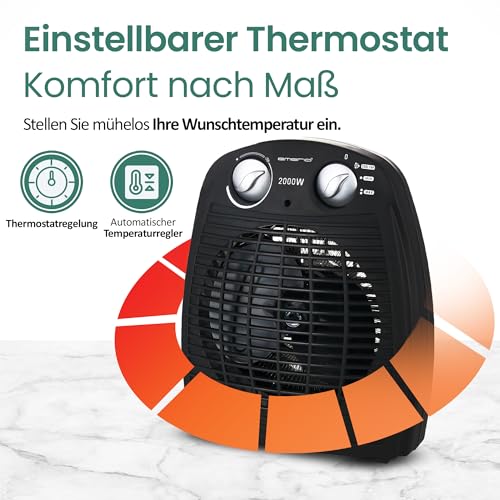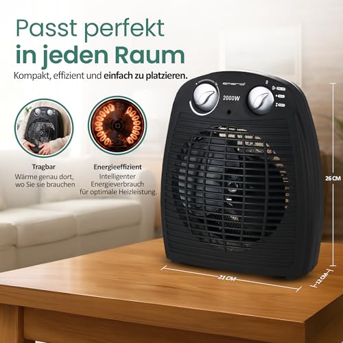 Emerio FH-106737.2, Note 1.5, kleiner kompakter portabler Heizlüfter für 25 m², 2 Heizleistungen + Ventilatorfunktion, verstellbarer Thermostat, Sicherheitsschalter, Handgriff, 2000 Watt, Anthrazit