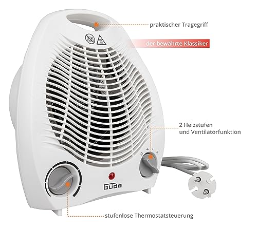 Güde 85175 Heizlüfter GH 2000 (2000 W Heizleistung, 2 Stufen (1000/2000 W), Ventilatorfunktion, Gebläseleistung 75 m³/h, stufenloser Thermostat, Überhitzungs- & Kippschutz, Tragegriff, schnelle Wärme)