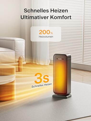 PTC-Keramikheiztechnologie: PELONIS PTC-Keramikheizungen verwenden fortschrittliche Keramikheizelemente, um schneller und energieeffizienter aufzuheizen als herkömmliche Ölheizkörper und enthalten zwei Heizstufen und eine ECO-Modus-Einstellung, um Energie zu sparen und gleichzeitig komfortabel zu bleiben