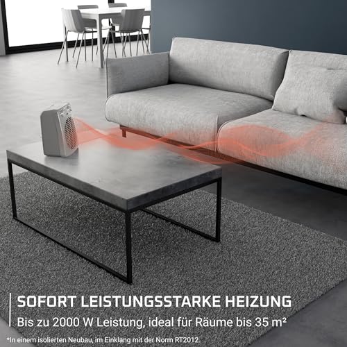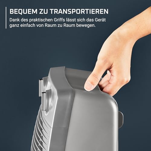 Dank Transportgriff leicht zu transportieren und zu verstauen: Nehmen Sie Ihren Heizlüfter überall hin mit – dank seiner kompakten Größe kann er leicht verstaut werden, ohne viel Platz einzunehmen