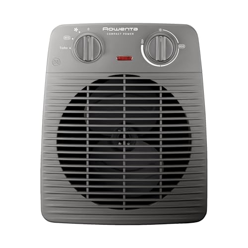 Rowenta Compact Power Heizlüfter, 2 Leistungsstufen, kompakte Abmessungen, Thermostat, Kühlstufe, Tragegriff, Grau, SO2212F0, Hellgrau