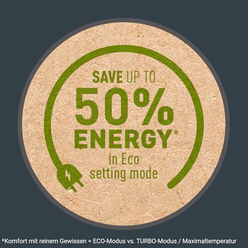2 anpassbare Heizstufen: Wählen Sie zwischen der Eco-Einstellung für eine dezente Wärme oder die Turbo-Einstellung für ein kraftvolleres schnelles Aufheizen
