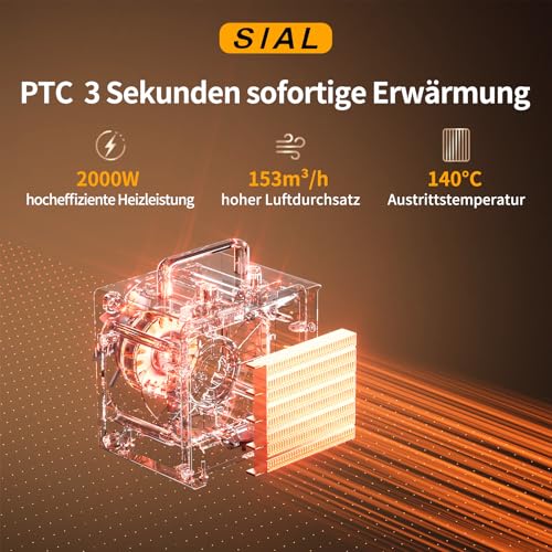 SIAL PA2 Heizlüfter sind perfekt für kleine Räume, tragbare Heizung, Schreibtische, Büros, Schlafzimmer, Teppiche, Gewächshäuser