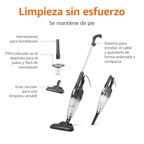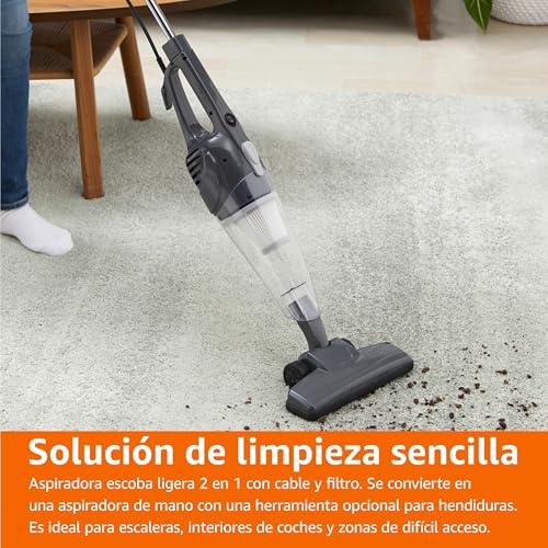 Amazon Basics Stielstaubsauger, 2-in-1-Gerät mit Kabel, ECO-Motor, HEPA-Filter, geringes Gewicht, Schwarz