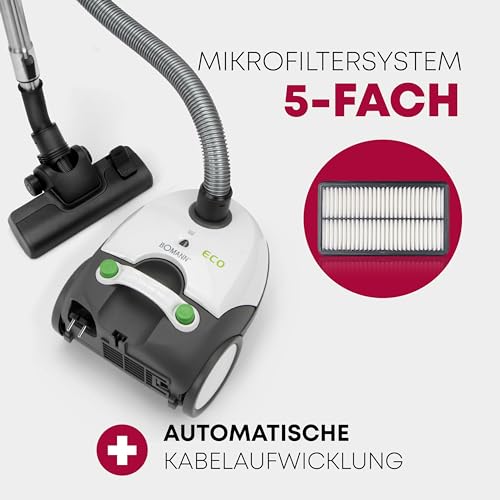 Bomann® Bodenstaubsauger mit energiesparenden 700 Watt | Staubsauger mit 5-Fach Mikrofiltersystem | Sauger mit Beutel | Umschaltbare Bodenbürste und Bürsten-/Fugendüse | BS 9019 CB N weiß