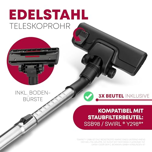 Staubsaugerbeutel: Kompatibel mit Staubfilterbeutel SSB98 / Swirl Y298 | *Swirl, Y 2988 ist eine registrierte Marke eines Unternehmens der Melitta Gruppe, die nicht mit der Firma C. Bomann GmbH verbunden ist