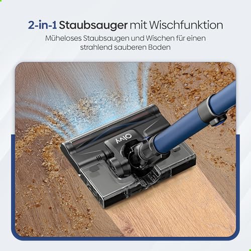 Olvy Akku-Staubsauger mit Wischfunktion, Tierhaare/Teppiche/Hartböden, Kabelloser 2-in-1, ohne Beutel, 35KPA Saugleistung, 5 Stufen, LED-Display, Leichter Staubsauger mit HEPA-Filter & Zubehör
