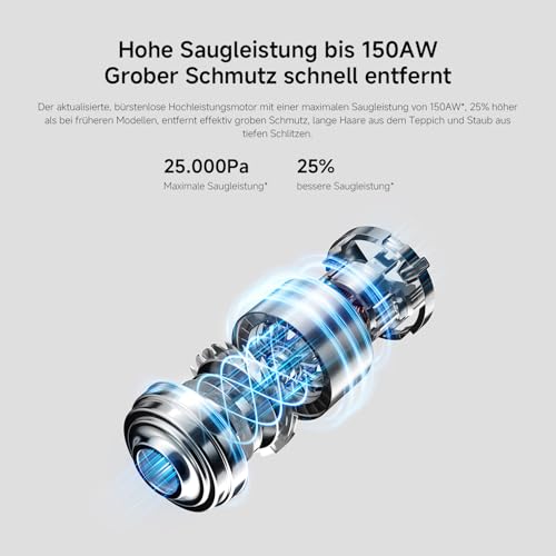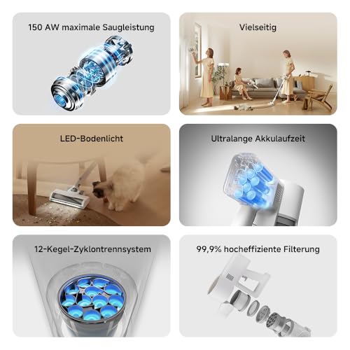 XIAOMI Vacuum Cleaner G20 Staubsauger Kabellos, 25.000PA / 150AW, mit Zyklon-Technologie, beutellos, leistungsstarker Akkusauger für Tierhaare, Auto, Teppich & Hartboden, bis zu 60min Laufzeit