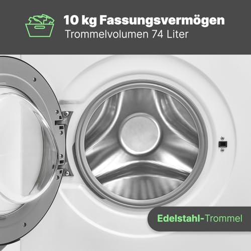 Perfekte Kapazität: Das 10kg Fassungsvermögen der Waschmaschine bietet ausreichend Platz für große Wäscheladungen und spart Zeit beim Waschen