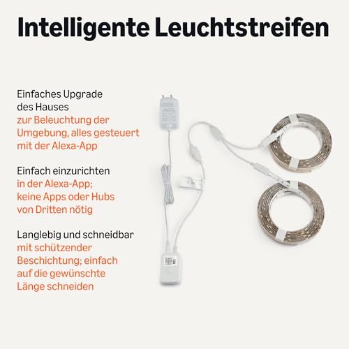 Einfach einzurichten mit der Alexa-App: Mehreren Einrichtungsoptionen, z. B. indem du an der Kasse „Gerät mit deinem Amazon-Konto verknüpfen“ auswählst. Keine Hubs, Anwendungen von Drittanbietern oder Vorkenntnisse erforderlich. Hinweis: Amazon Basics Smart Light Strips funktionieren ausschließlich mit Alexa und können nur mit 2,4 GHz WLAN eingerichtet werden.