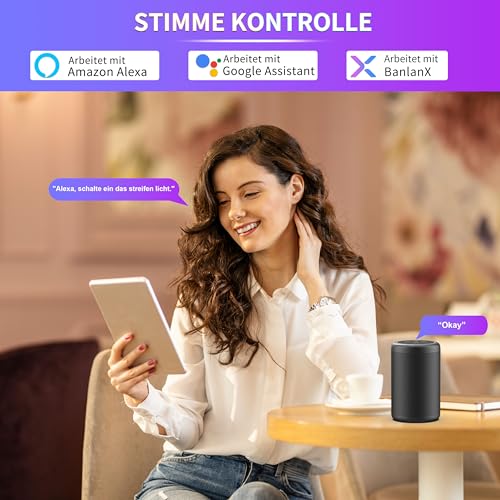 Sprachsteuerung: OULARA COB LED Streifen licht ist mit Alexa/Google Assistant kompatibel.Das Aufwecken Ihrer LED Streifen lichter mit einfachen Sprachbefehlen macht Ihre Bedienung bequemer. Finden Sie die Sprachplattform von Drittanbietern Alexa/Google Assistant in der “BanlanX”APP und Befolgen Sie die Schritte zum Herstellen einer Verbindung.Sobald die Verbindung hergestellt ist,kann es per Sprache gesteuert werden.Hinweis: Bitte stellen Sie sicher,dass Sie die licht streifen zuerst zu Ihrer “BanlanX”App hinzufügen (stellen Sie sicher, dass die drei Symbole neben dem Gerät leuchten,unterstützt nur 2,4G WIFI)