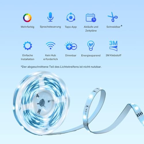 Tapo TP-Link LED Strip 5M, Wifi LED Streifen, 16 Mio. Farben, dimmbar, APP Steuerung, schneidbar, kompatibel mit Amazon Alexa, Hey Google, kein Hub notwendig, energiesparend L900-5