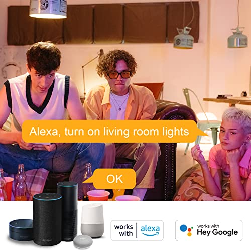 【Sprachsteuerung】: Sie können Alexa oder Google Home zu Hause anschließen und LED-Lampen durch einfache Sprachanweisungen steuern. Zum Beispiel wird die Birne ein- oder ausgeschaltet, die Helligkeit, die Farbtemperatur oder die Variation der Farbfarbe und dergleichen.