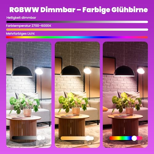 Smarte Glühbirne E27, WLAN LED Lampe RGBWW Dimmbare mit 16 Millionen Farben, 850LM, Smart Home Alexa Zubehör, Kompatibel mit Alexa & Google Assistant, 2.4GHz, 2 Stück