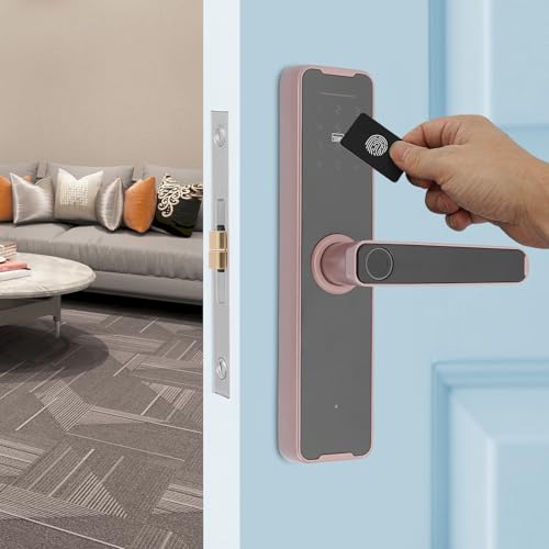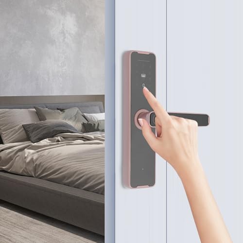 Intelligentes Türschloss,5-in-1 Elektronisches Türschloss mit Fingerprint + Code + Schlüssel + Karte + temporäres Passwort,App-Steuerung Smart Riegelschloss für Haustür 35-50mm (roségold)
