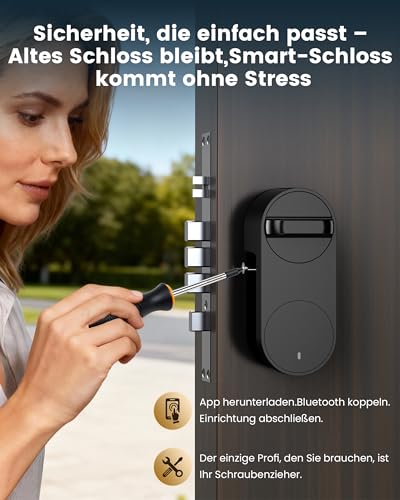 Signstek Smart Lock mit Fingerabdruck, Elektronisches Türschlosss mit Bluetooth, Türöffner per Fingerprint, Passcode, Smartphone, Nachrüstbare Smartes Schloss, Kein Tausch des Schließzylinders nötig