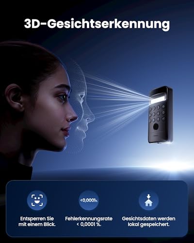 [Top 3D-Strukturlicht-Gesichtserkennung – Schnellstes Gesichtserkennungs und Entsperrungsverfahren] Mit Finanz-Grade-Technologie für die Modellierung des Gesichts mit über 30.000 Infrarotpunkten auf Millimeterbasis unterstützt sie verschiedene Looks wie geschminktes Gesicht, Hut oder Brille mit einer Fehlerrate von unter 0,0001 % für sicheren Schutz.