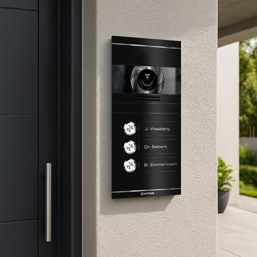 Metzler Video Türsprechanlage 3 Familienhaus | Türklingel mit Kamera FullHD | Opt. 7″ Monitor | Smartphone App | Mit Anschluss für Türöffner | Anschluss: 2-Draht IP | Tiefschwarz | VDM10 2.0 Colson