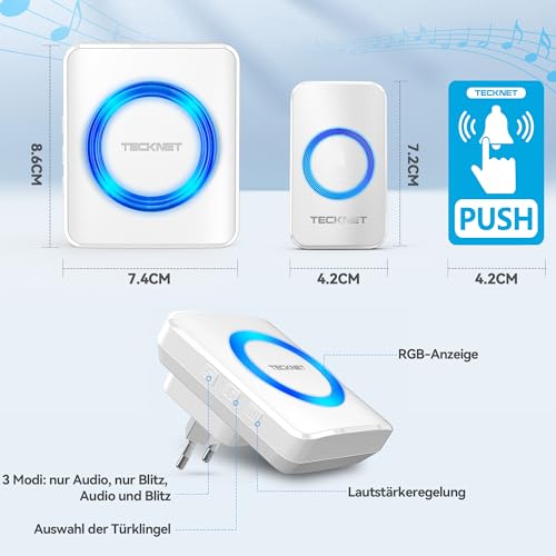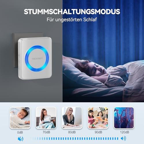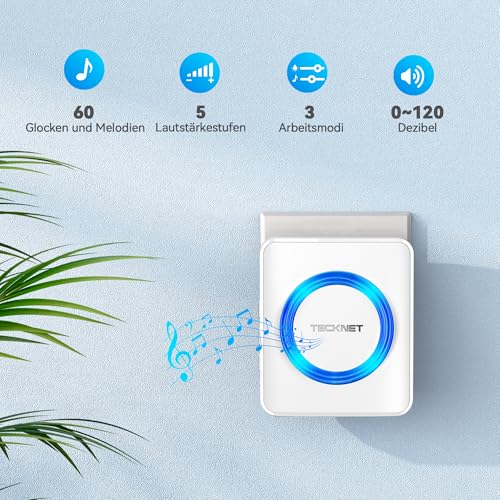 【5 Tonstufen & 60 Verschidene klngeltone】Der klingel funk bietet satten und klaren Klang. Es gibt 5 Tonstufen zur Auswahl verschiedener Töne(0 dB bis 120dB). Die Klingel verfügt über 60 Glocken Ihren Bedürfnissen gerecht zu werden.drücken Sie den Next oder Previous Knopf, um einfach aus 60 Melodien zu wählen