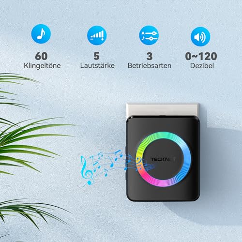 【5 Tonstufen & 60 Verschidene klngeltone】Der klingel funk bietet satten und klaren Klang. Es gibt 5 Tonstufen zur Auswahl verschiedener Töne(0 dB bis 120dB). Die Klingel verfügt über 60 Glocken Ihren Bedürfnissen gerecht zu werden.drücken Sie den Next oder Previous Knopf, um einfach aus 60 Melodien zu wählen.