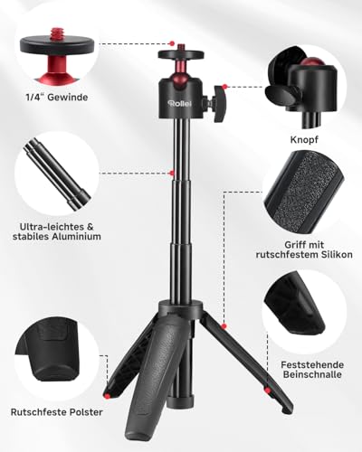 Rollei Ministativ Comfort Desktop, Tischstativ mit 360° Kugelkopf für DSLR DSLM & Kompakt-Kameras Mini Stativ Tragbar 2-in-1 Kamerastativ Klein & Handy Stativ, Ministativ-Handystativ-Tischstativ-Klein
