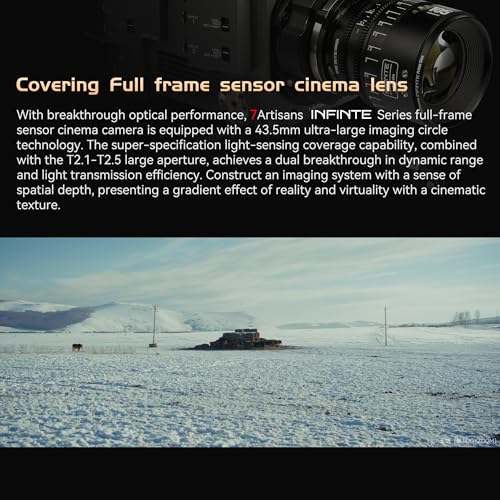Vollformat-Abdeckung: Das 7artisans INFINTE Cine-Objektiv wurde für professionelle Filmproduktionen entwickelt und unterstützt einen maximalen Bildkreis von 43,5 mm für Vollformatsensoren. Es ist hochkompatibel mit gängigen Kinokameras und ermöglicht nahtlose Plattformwechsel. Mit Standard-Fokusgetrieben lässt es sich mühelos in verschiedenste Setups integrieren.