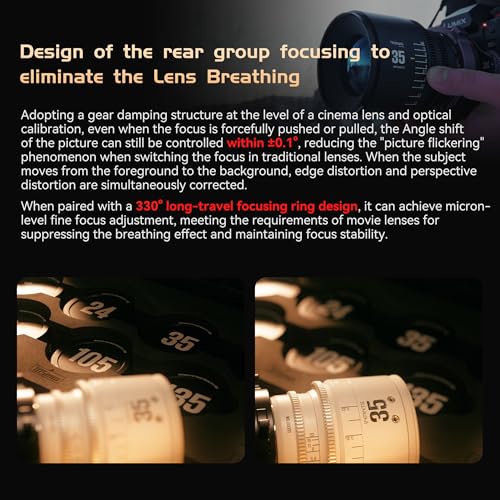 Atemeffekt-Kontrolle & flüssiger Betrieb: Die INFINTE-Serie verwendet eine integrierte Floating-Linsenstruktur und präzise optische Kalibrierung, um sichtbares Fokus-Breathing zu minimieren und Bildstabilität zu gewährleisten. Mikrometergenaue Montage und stoßgedämpfte Getriebestruktur sorgen für sanfte Bedienung – ideal für Dokus, Werbung und emotionale Longshots.