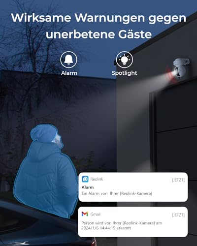 FERNZUGRIFF UND SOFORTIGE, EFFEKTIVE ABSCHRECKUNG: Verwalten Sie Ihre Kamera Set Überwachung Aussen mit der Reolink App und genießen Sie eine einfache Überwachung von überall. Bei Erkennung von Bewegung werden sofort Spotlights und Alarm ausgelöst, um verdächtige Personen abzuschrecken, und Sie erhalten App-Push- und E-Mail-Benachrichtigungen. Hören und sprechen Sie in Echtzeit über Zwei-Wege-Audio, um Eindringlinge abzuschrecken, wenn Sie einen Alarm erhalten.