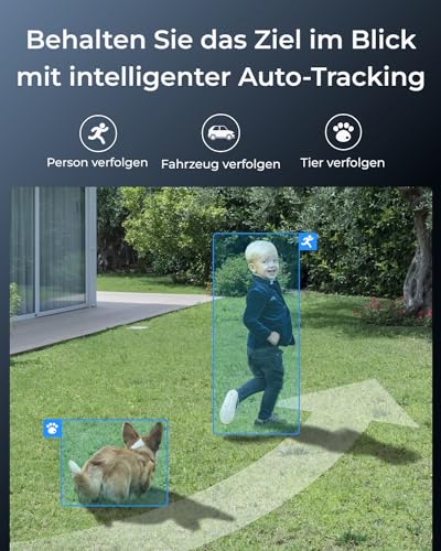 ULTRAWEITE ABDECKUNG & SMART-ERKENNUNG: Mit der PT-Kamera, die sich um 355° schwenken und um 50° neigen lässt, können Sie eine breitere Perspektive einsehen. Ausgestattet mit Smart-Technologie, erkennt sie präzise die Bewegungen von Personen, Fahrzeugen und Tieren. Unsere fortschrittliche Tiererkennung geht über die standardmäßige Erkennung von Katzen und Hunden hinaus und deckt eine Vielzahl von Tieren ab. Die Kamera verfügt jetzt über Schwenk- und Neigefunktionen, um verdächtige Aktivitäten automatisch zu verfolgen.
