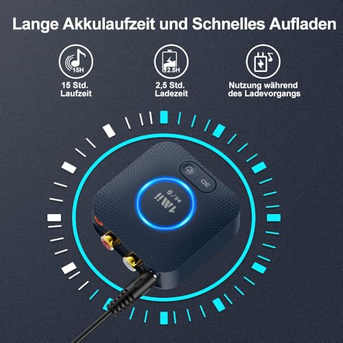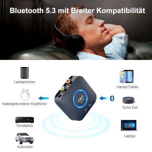 【HiFi-Sound & 3D Audio】Dank Bluetooth 5.3 unterstützt der Empfänger aptX HD für detailreichen Klang sowie aptX Low Latency (aptX LL) für verzögerungsfreie Musikübertragung. Die zuschaltbare 3D-Audio-Funktion sorgt per Knopfdruck für ein immersives Hörerlebnis.