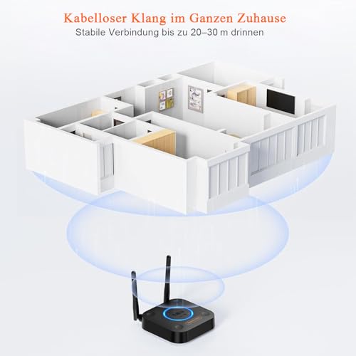 【Große Reichweite】Dank Dual-Antennen und Bluetooth der Klasse 1 genießen Sie eine stabile Verbindung mit bis zu 60 Metern Reichweite im Freien oder 20–30 Metern in Innenräumen. So können Sie Musik im Wohnzimmer, in der Küche oder sogar auf der Terrasse hören, ohne Signalverlust oder Unterbrechungen.