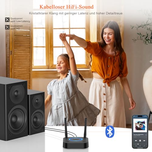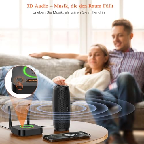 【Universelle Kompatibilität】Der 1Mii Bluetooth audio receiver verfügt über mehrere Audioausgänge (optisch, koaxial, 3,5 mm und RCA/AUX). Schließen Sie ihn problemlos an Ihr bestehendes Audio-Setup an – egal ob Stereoanlage, AV-Receiver oder Aktivlautsprecher. HINWEIS: 𝐃𝐢𝐞𝐬𝐞𝐬 𝐏𝐫𝐨𝐝𝐮𝐤𝐭 𝐢𝐬𝐭 𝐧𝐮𝐫 𝐞𝐢𝐧 𝐄𝐦𝐩𝐟ä𝐧𝐠𝐞𝐫, 𝐤𝐞𝐢𝐧 𝐒𝐞𝐧𝐝𝐞𝐫. 𝗘𝗿 𝗳𝘂𝗻𝗸𝘁𝗶𝗼𝗻𝗶𝗲𝗿𝘁 𝗡𝗜𝗖𝗛𝗧 𝗺𝗶𝘁 𝗕𝗹𝘂𝗲𝘁𝗼𝗼𝘁𝗵-𝗞𝗼𝗽𝗳𝗵ö𝗿𝗲𝗿𝗻 𝘂𝗻𝗱 𝗙𝗲𝗿𝗻𝘀𝗲𝗵𝗲𝗿𝗻.