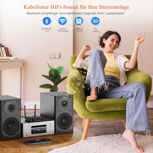 【Verwandeln Sie Ihre alte Stereoanlage 】Geben Sie Ihren klassischen Lautsprechern neues Leben! Der 1Mii Bluetooth Empfänger macht aus jeder alten Stereoanlage oder jedem Verstärker ein kabelloses HiFi-System. Streamen Sie Musik direkt von Ihrem Smartphone, Tablet oder Laptop – ganz ohne Kabelsalat.