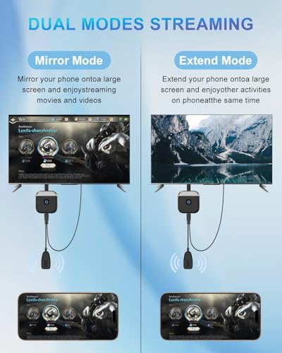 【Nahtloses geräteübergreifendes Mirroring】Befreien Sie sich von Bildschirmgrößenbeschränkungen dank Dualband 2,4G/5G WLAN Synchronisierung. Ob beim Streamen von Videos von iOS Geräten oder beim Präsentieren von Excel Tabellen auf Laptops erleben Sie Signalstabilität in Militärqualität (72 Stunden kontinuierliche Übertragung getestet). Unsere Technologie passt die Bitrate automatisch an, um eine extrem niedrige Latenz von 0,3 s zu gewährleisten.