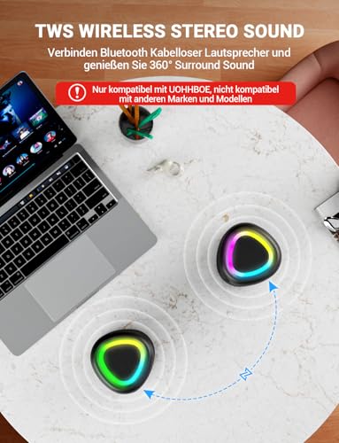 Erzeugen Sie 360°-Stereosound: Unsere Bluetooth Lautsprecher verfügen über den TWS Modus und bieten eine Ausgangsleistung von 15W pro Gerät. Koppeln Sie einfach zwei UOHHBOE Lautsprecher desselben Modells, um ein raumfüllendes Stereosound-Erlebnis mit insgesamt 30W zu schaffen. Perfekt für kleine Zusammenkünfte, Filmabende oder sogar zum Einrichten eines Mini-Heimkinos in Ihrem Wohnraum.