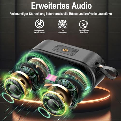 Langlebig und IP6 wasserdicht: Der bluetooth boxen ist nach IP6 wasserdicht musikbox. ABS Kunststoffhülle-Anti-Staub und Anti-Fingerabdruck zum Schutz gegen Wasserspritze und Verschüttungen. Outdoor lautsprecher ist ideal für Outdoor Aktivitäten, perfekt für Partys, am Pool, am Strand, beim Camping oder Wandern usw.
