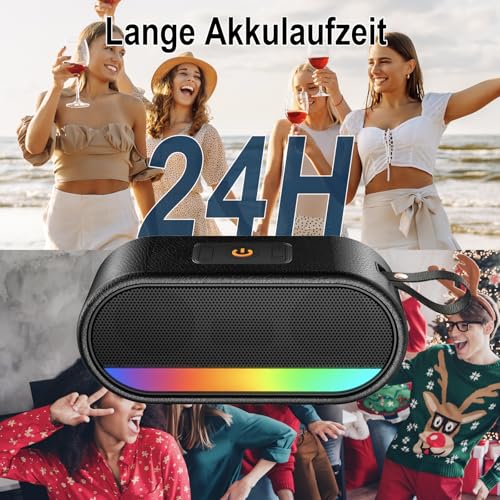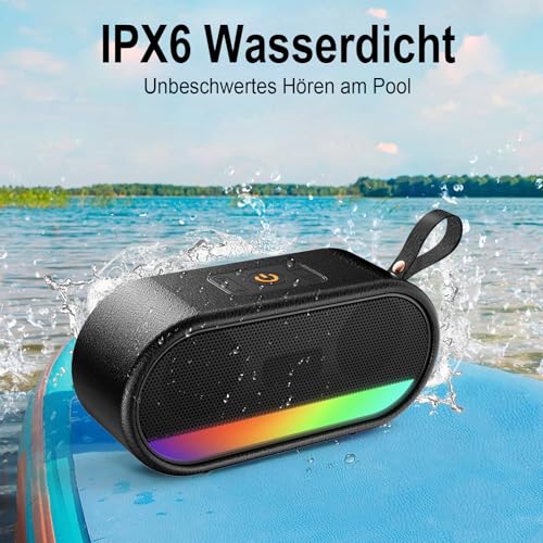 Bluetooth Lautsprecher mit Licht, Tragbarer Musikbox Bluetooth 5.3 Box mit IPX6 Wasserdicht, 10h Akku, Bass Boost Freisprechen TWS Paarung, Soundbox für Outdoor/Party/Reisen, Schwarz