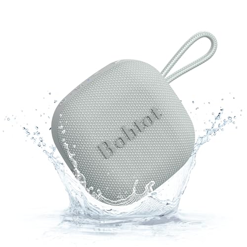 Bobtot Tragbarer Bluetooth Lautsprecher, IPX7 Wasserdicht, Kleiner Kabelloser Duschlautsprecher, 16 Stunden Akkulaufzeit, Sattem Bass, TWS, Integriertem Mikrofon und Trageschlaufe, Grau
