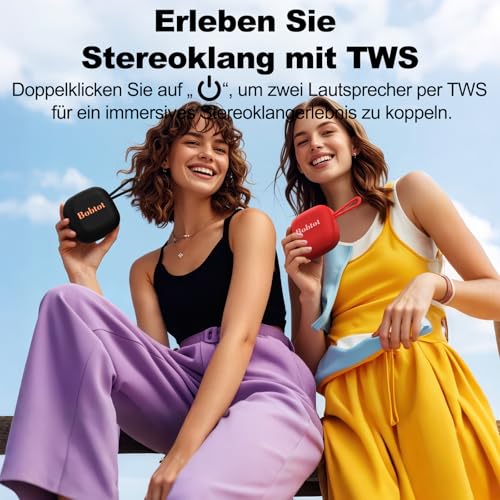 【Echte kabellose Dual-Stereo-Kopplug】Verbinden Sie zwei kabellose Lautsprecher per Bluetooth in Reihe, um Surround-Stereo-Sound zu genießen. Sie können zwei Lautsprecher gleichzeitig erwerben. Schalten Sie einfach beide Lautsprecher ein und drücken Sie zweimal schnell die Ein-/Aus-Taste an einem der beiden, um sie zu koppeln. So erleben Sie doppelte Lautstärke und ein unvergleichliches Klangerlebnis.