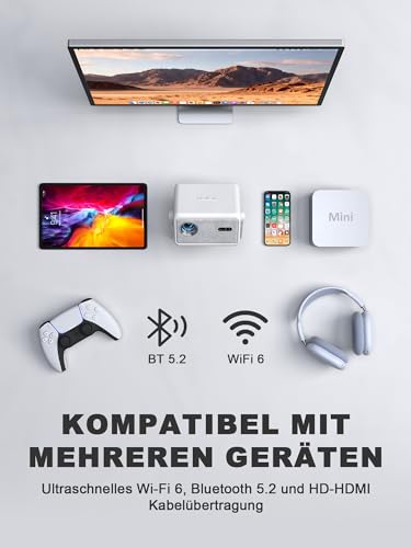 ![Smart Mini Beamer [Offiziell Lizenzierter APP] Autofokus /6D Trapezkorrektur 27000 Lumen WiFi6 Bluetooth Beamer Klein Full HD 1080P, VISSPL Unterstützt 4K Projector,Handy Projektor für Heimkino – Bild 3](https://m.media-amazon.com/images/I/41Y7Z-WPkXL.jpg)