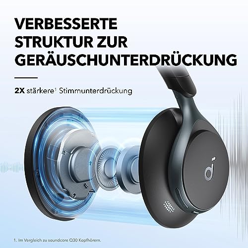 soundcore by Anker, Space One Kabellose Kopfhörer, Adaptives aktives Noise Cancelling, 2X stärkere Stimmunterdrückung, 40h ANC Akkuleistung, App Steuerung,Hi-Res Audio, Leichtes Design, Bluetooth 5.3